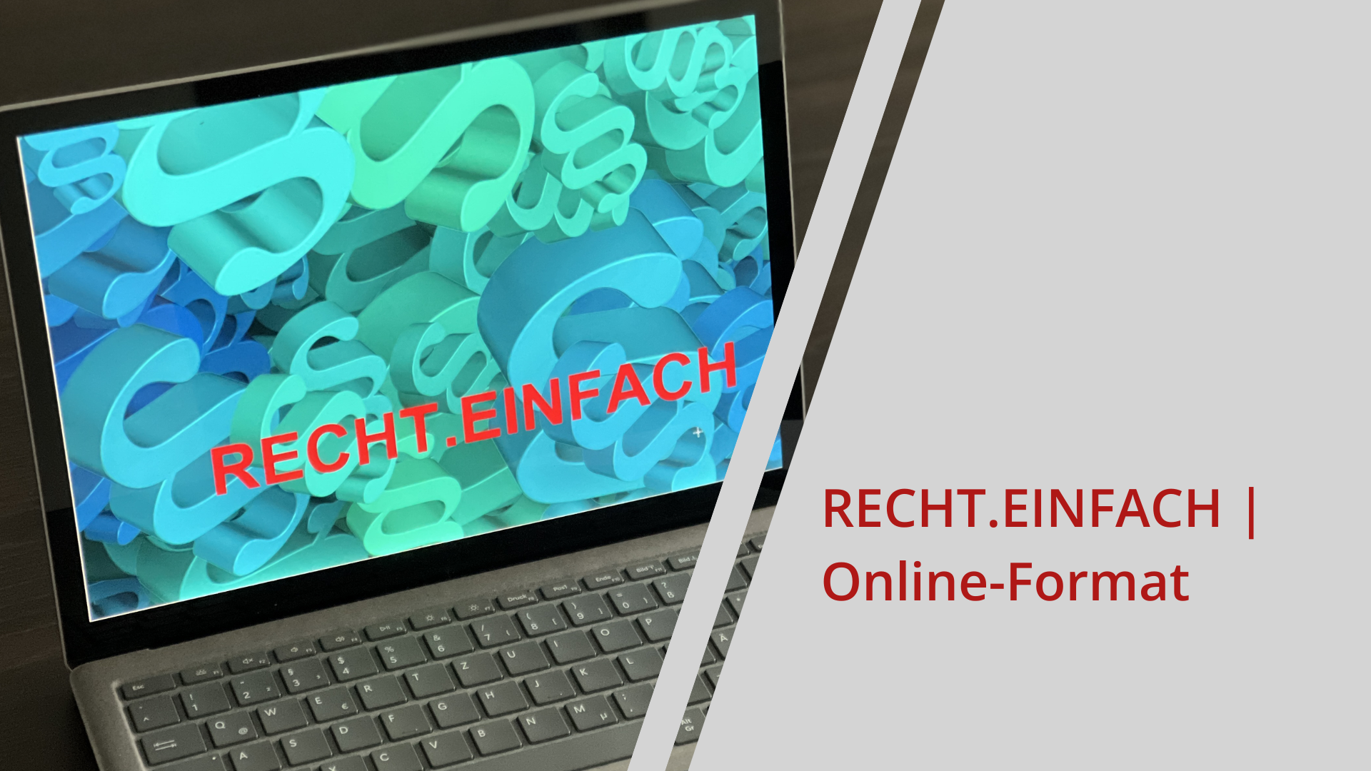 Im Rahmen des Online-Formates „Recht.Einfach“ werden in kompakten 30-minütigen Sitzungen jeden ersten Freitag im Monat pragmatische Informationen zu wichtigen rechtlichen Themen vermittelt